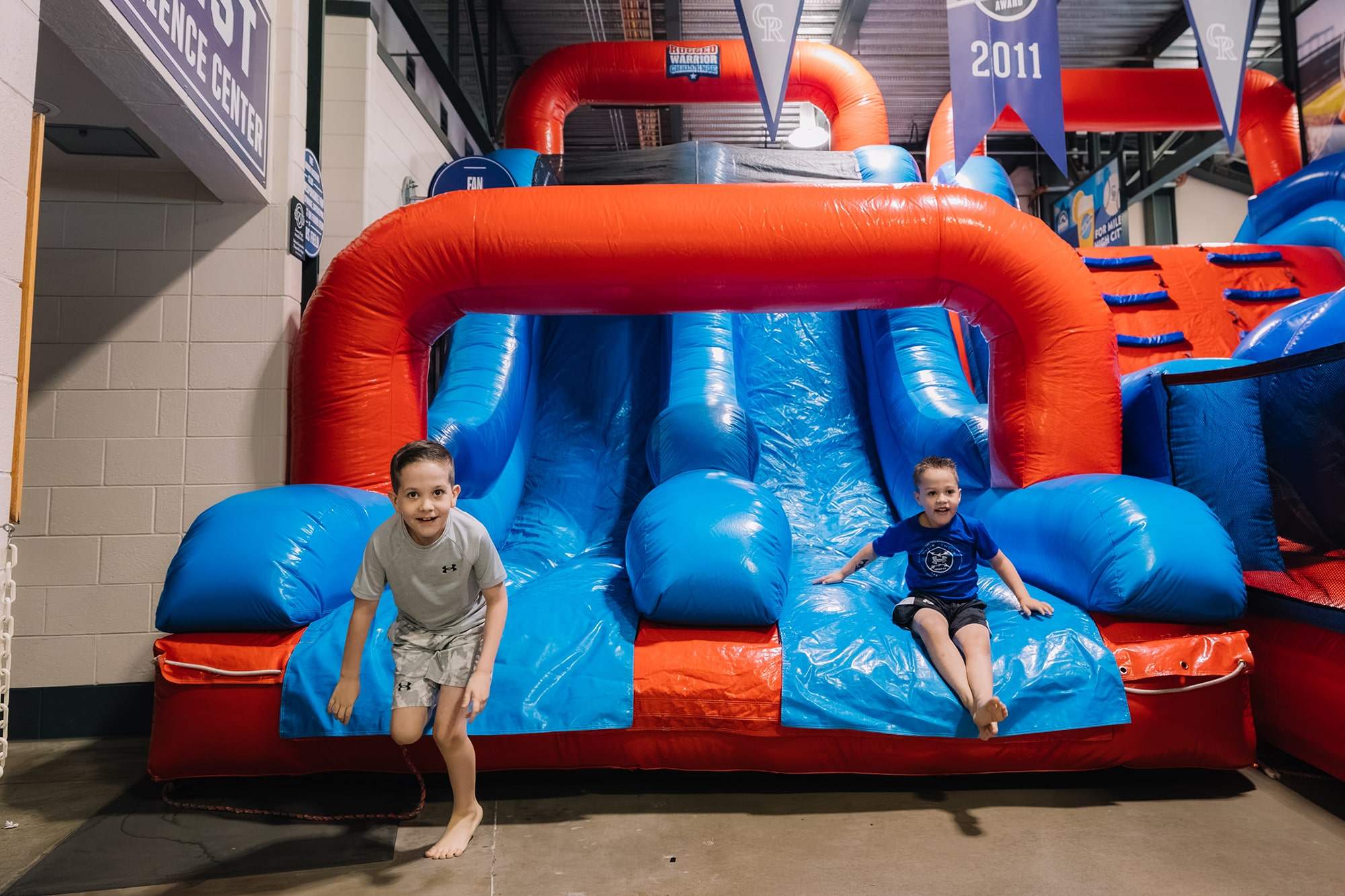 Two boys are having fun at the Brannan Companies Picnic 2025 activity zone in Colorado